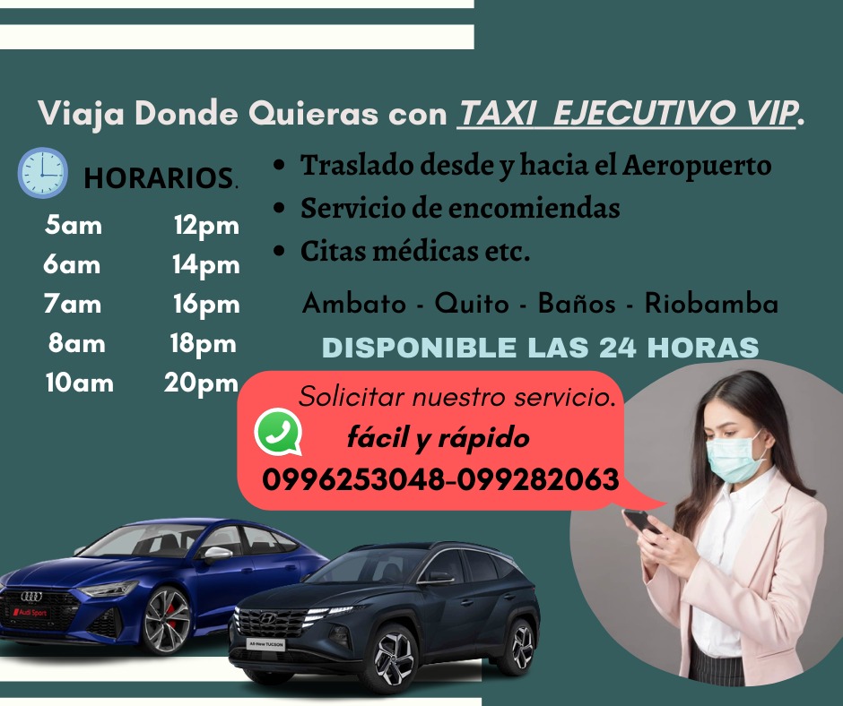 La compañía Taxi Ejecutivo es una empresa ambateña líder en el servicio de trasporte ejecutivo puerta a puerta, viajes en servicio express y Compartido, entrega de documentos y encomiendas.